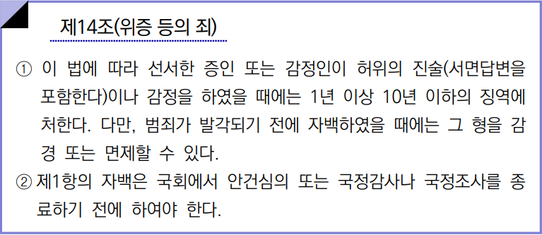 ▣ 국회에서의 증언·감정 등에 관한 법률 개정