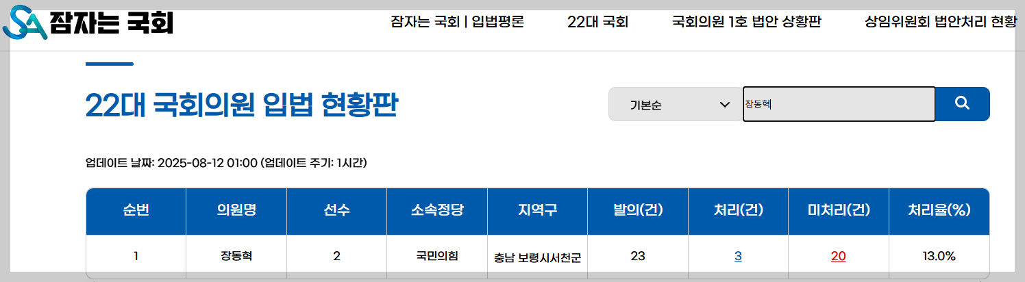 국회의원은 '법으로' 일하는 사람들이다. 장동혁 의원이 국민의힘 새 당대표로 선출되었다. 장동혁 대표는 이재명 정권을 끌어내리겠다며 대여 강경투쟁을 예고하고 있다. 국회의원의 관심사와 성향을 판단하는데 있어 그동안 발의한 법안을 살펴보는게 도움이 될 것이다. 사전투표제 폐지, 국정원 대공수사권 부활 등 장동혁 의원이 22대 국회에서 발의한 법안의 주요내용을 살펴본다.