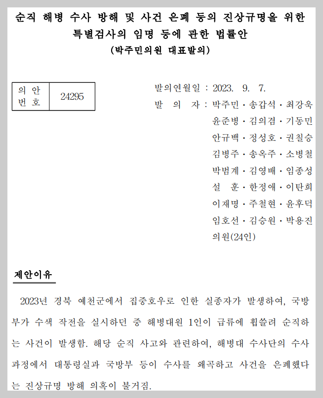 √ 발의: 2023년 9.7일(박주민 등 24인)