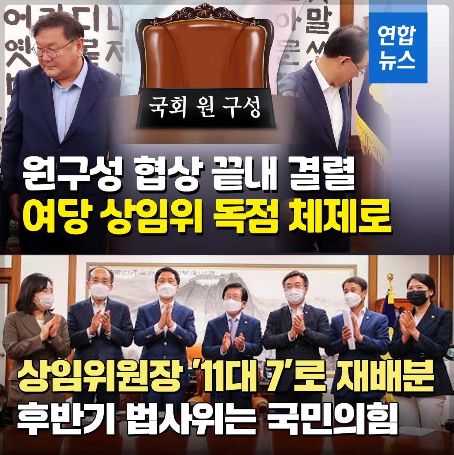 이상 살펴본 것처럼, 법사위원장을 누가 해야 하는가의 문제는 진영논리나 관례로는 풀기 어려운 퍼즐이다. 결국 타협하고 합의해야 할 문제다. 타협이 안되면 21대 국회 전반기처럼 민주당이 18개 위원회 위원장을 독점할 수도 있다. 그러나, 그것이 '정상적이지 않다'는 여야의 공통된 문제인식에 따라 1년 2개월만에 위원장을 재배분하는 시행착오를 이미 겪은 바 있다. 그러고도 다시 정상적인지 않은 모양으로 22대 국회를 출범시키는 건 바람직하지 않다.