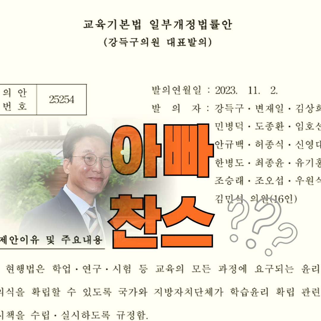 아빠찬스냐 아니냐의 문제는 국무총리 후보자 인사청문회에서 밝혀질 것으로 예상한다. 다만 이 법률의 연혁을 보면, 교육기본법 제17조의3(학습윤리의 확립) 조항은 2005년 11월 8일에 신설·시행되었다. 당시 이 조항을 신설하여 교육기본법을 개정한 의원은 현재 교육부총리를 맡고 있는 이주호 의원이다. 2005년 당시에도 입시 부정행위나 표절 논란이 적지 않았는데, 이에 대한 개선방안 차원에서 이 조항을 새로 만든 것이다. 그런 맥락에서 보면 강득구 의원의 개정안은 현행법 제17조의3(학습윤리의 확립) 조항의 실행력을 강화하기 위한 법안으로 이해되는 측면도 있다.