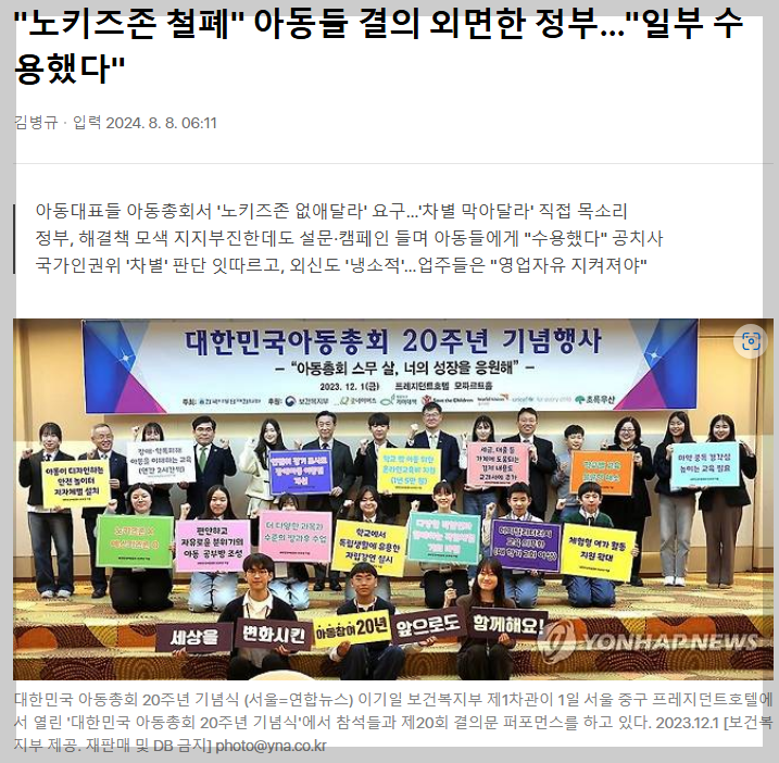 ☞연합뉴스_"노키즈존 철폐" 아동들 결의 외면한 정부…"일부 수용했다"