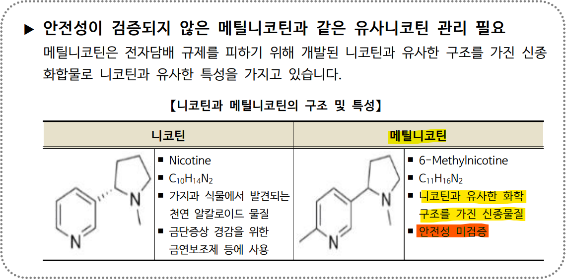 ▣ 메틸니코틴을 합성니코틴에 포함시켜 규제할 수 있을까?