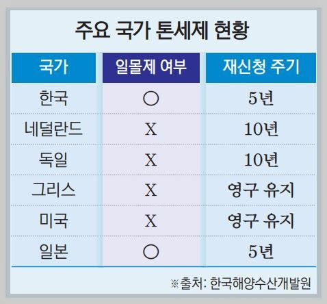 일반적으로 법인세는 영업이익을 기준으로 산출된다. 그런데 해운사의 경우 영업이익 대신 선박의 톤수와 운항 일수를 기준으로 세금을 계산하는데 이를 '톤세제'라고 한다. 해운업의 업황 변동이 워낙 심하다보니 해운사의 경영 안정성을 확보하기 위해 도입된 제도로 보인다. 톤세제 도입으로 해운사는 일반 법인세 방식보다 세금부담이 크게 줄었다. 문제는 톤세제가 영구법이 아니다. 우리나라의 경우 2005년에 5년 일몰제로 도입되었다. 5년마다 연장 여부를 결정하는데, 이미 3번(09년, 14년, 19년) 연장되었고, 금년 2024년에 다시 한번 연장 여부를 결정해야 하는 것이다.