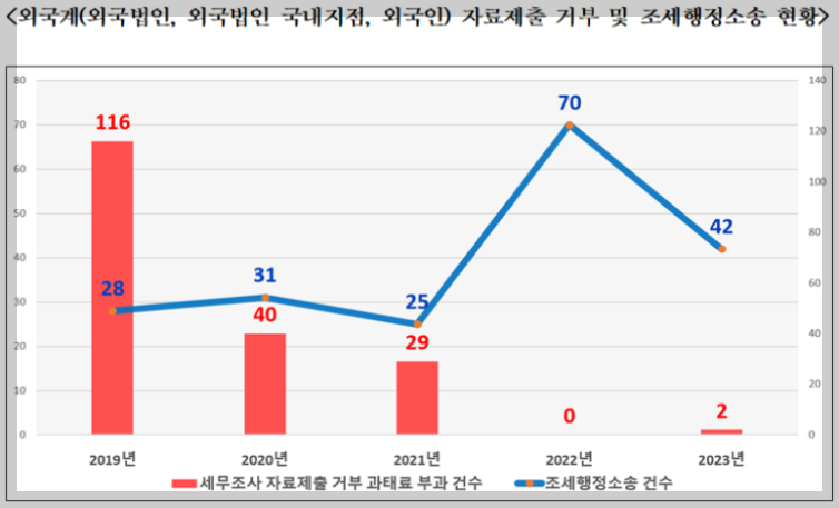 세무조사를 거부하면 국세청은 매출을 추계하여 과세할 수밖에 없다. 세무당국이 이익규모를 추산해 세금을 때리면 빅테크는 대형 로펌을 동원해 소송전에 돌입한다. 소송에서는 자신들에게 유리한 자료만 제출하는 방식으로 승소 확률을 높인다. 참고로, 6대 대형 로펌이 담당한 외국인 조세행정소송에서 외국인의 승소율은 2023년 기준 79.3%에 이른다고 한다.