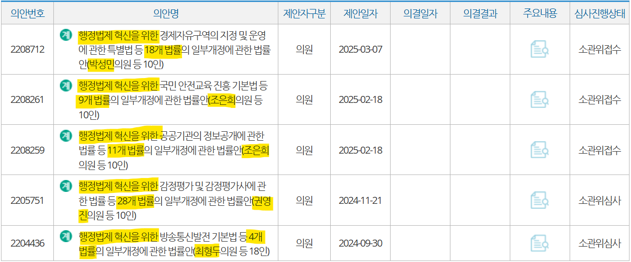 국회에서 발의된 법안을 보다 보면 위 법안들처럼 "행정법제 혁신을 위한~" 어쩌구 법안들을 볼 수 있는데, 이런 법안들은 모두 같은 맥락에서 발의된 법안으로 보면 된다.
