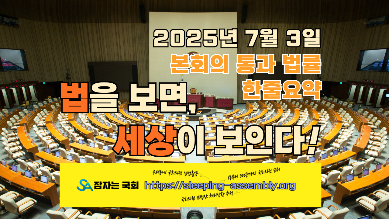 | 본회의 통과 법률안 한줄요약(2025-7-23) (4) | 2025.07.23 |