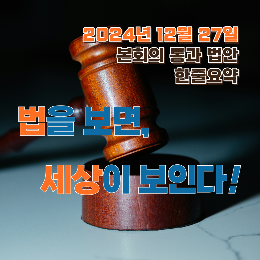본회의 통과 법률안 한줄요약(24년 12월 27일)