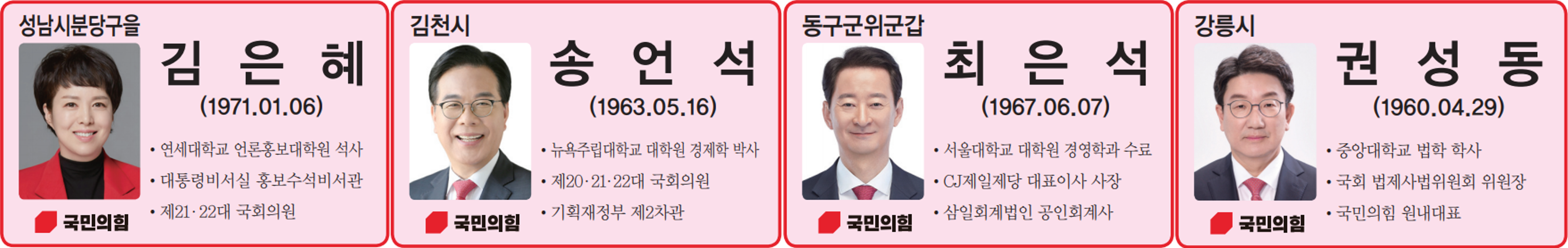 | 국민의힘 | 김은혜(안) | 5억원 | 5억원 | 5천만원 | 10억원 |