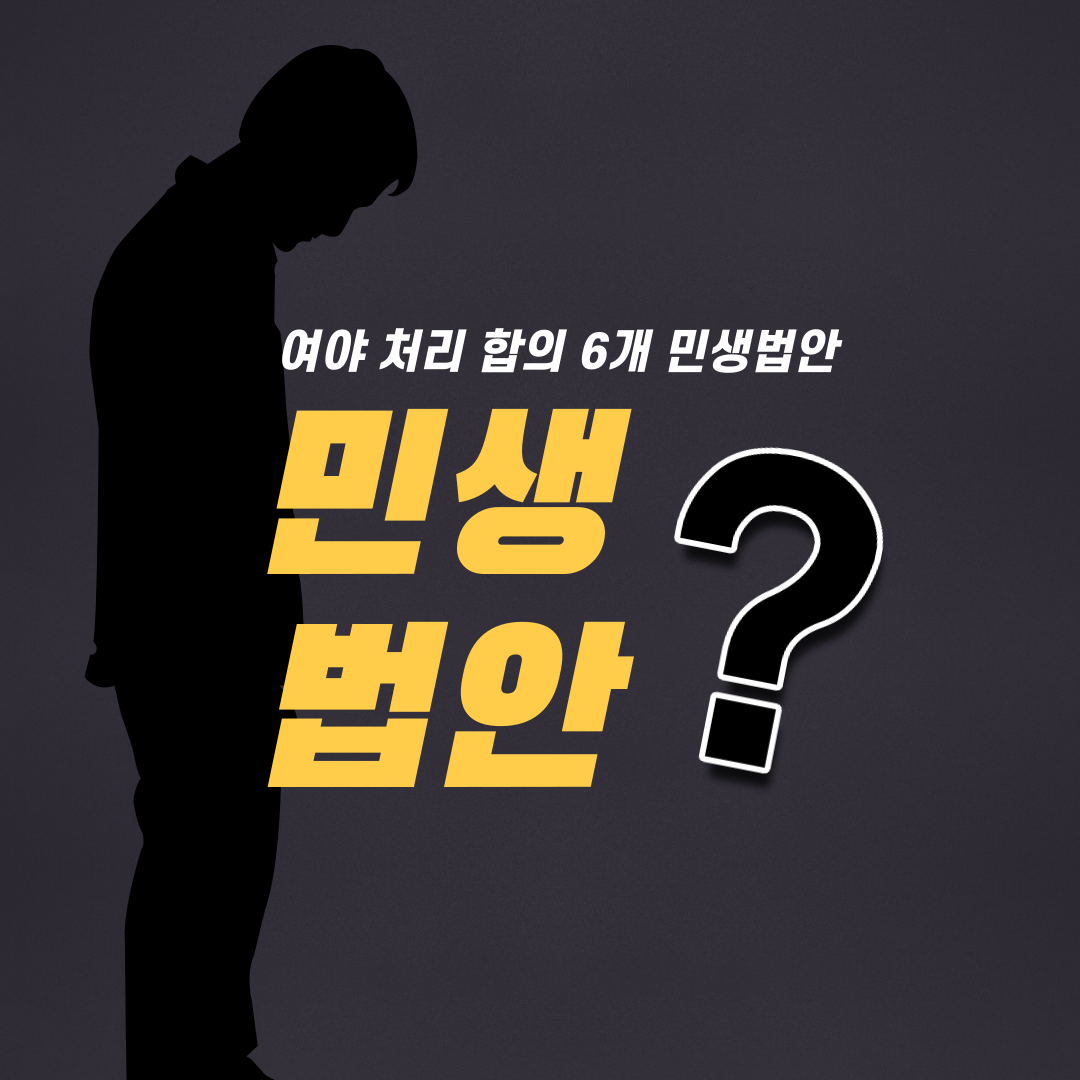 우리는 보통 '민생'을 먹고 사는 문제라고 생각한다. '민생법안'이라고 하면 뭔가 먹고 사는 문제의 어려움을 조금이라도 덜어줄 수 있는 법안이라고 기대한다. 여야가 민생법안이라고 주장하는 6개의 법안은 모두 필요한 법안이고 타당한 법안이다. 그러나 과연 서민들의 먹고사는 문제를 다루는 '민생법안'이라고 부를 수 있을까? 국회가 생각하는 민생의 기준은 아무래도 우리 서민들이 생각하는 기준과는 좀 다른 모양이다.