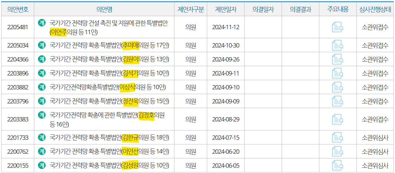 민주당의 김원이, 이상식, 정진욱, 김정호, 김한규, 추미애, 이언주 국민의힘 소속 김석기, 이인선, 김성원 의원이 발의했다. 이언주 의원은 여야 협상이 이루어진 하루 전에 법안 발의에 합류했는데, 이런 경우 보통 법안발의 및 처리 건수를 늘리기 위한 '끼워넣기' 수법으로 보면 된다.
