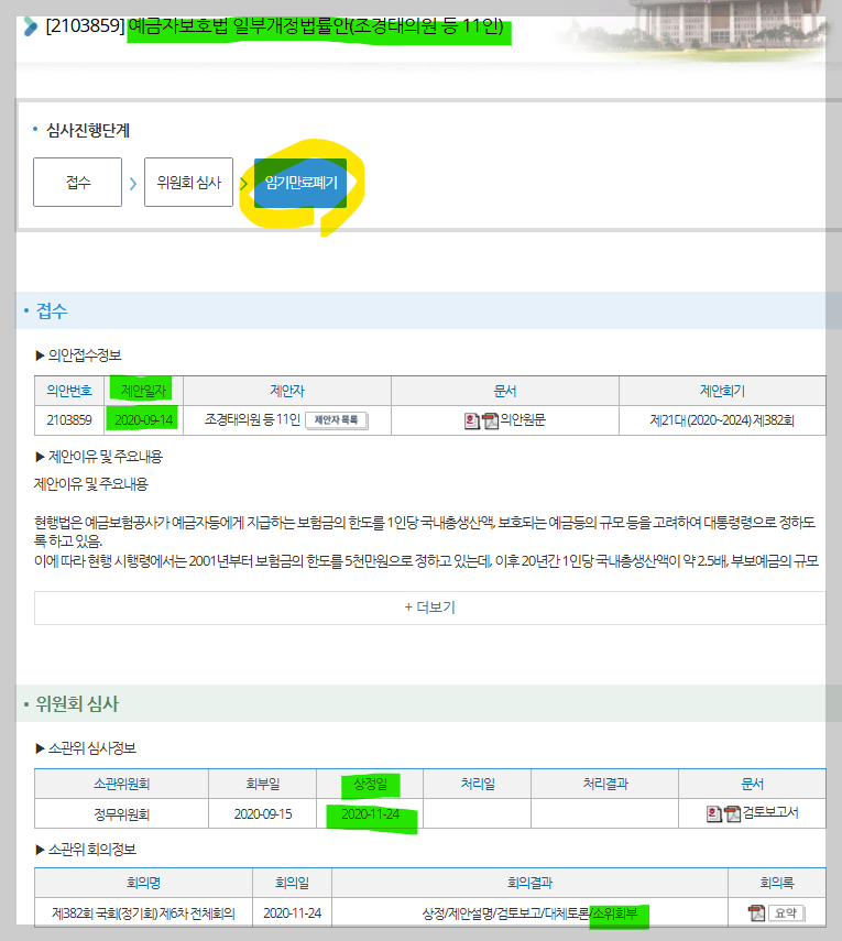 이 예금보호 한도 5천만원을 1억원 이상으로 높이자는 「예금자보호법」 개정안은 21대국회에서 조경태 의원이 가장 먼저 발의한 바 있다.