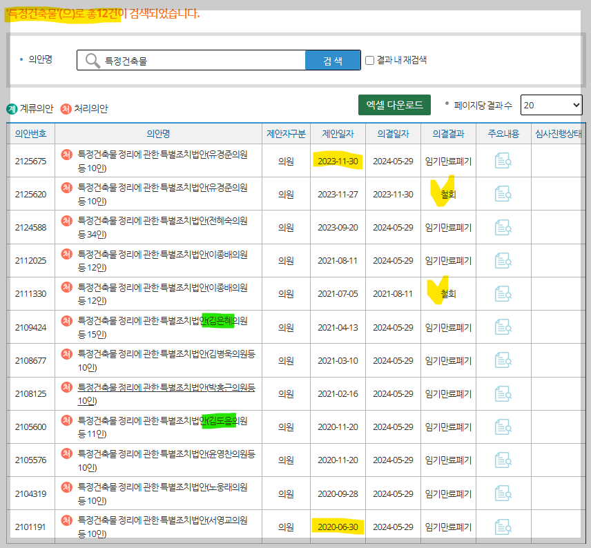 ▶22대국회 위법건축물 양성화 특별법안 발의 현황