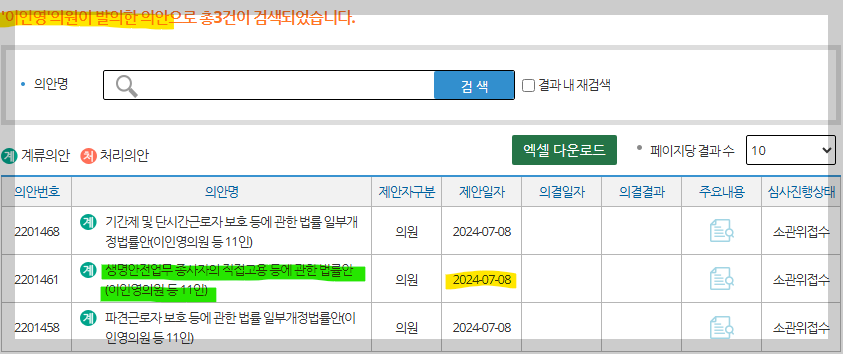 아무튼 이렇게 「생명안전업무 종사자의 직접고용 등에 관한 법률안」은 3수에 실패하고 4수에 도전하게 되었다. 그런데, 22대국회 이인영 의원의 1호법안 패키지 중 생명안전업무 법률 외 2건의 법안도 같은 경로를 거쳐왔다.