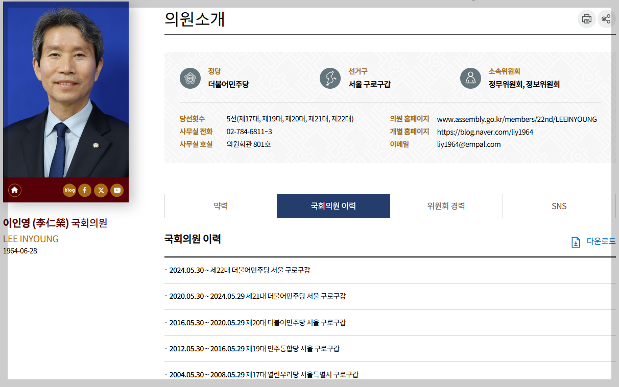 ▶4수에 도전하는 이인영 발의 법률안 동기들