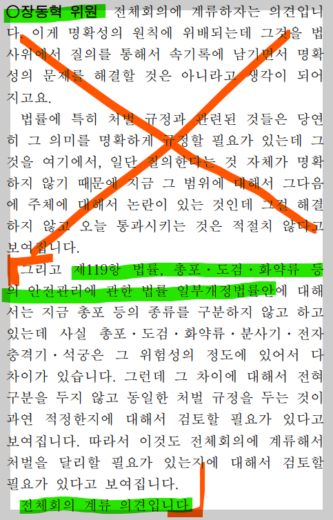 본인은 좀 억울할지도 모르겠지만, 이 법안 처리를 반대한 의원은 국민의힘 장동혁 의원이다. 우선 (2024년 1월 8일)회의록에 기록된 장동혁 의원의 발언을 보자.