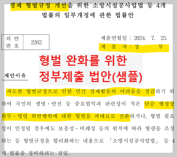 법적 형벌은 무조건 강하다고 효과가 큰 것은 아니다. 바람직하지도 않다. 우리 사회의 상식과 질서를 유지하기 위한 적정한 처벌이 최선이다. 그런데 실제로 너무 과한 형벌도 많다. 그래서 정부는 2022년 7월에 「경제 형벌규정 개선 TF」를 출범하여 경미한 위반행위는 범죄가 아닌 질서위반 행위로 보아 형사처벌 대신 과태료로 전환하는 방안을 마련해왔다. 이와 관련하여 정부가 다양한 형벌규정 완화 법안을 국회에 제출한 상태다.
