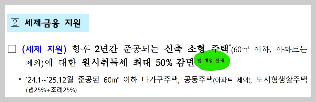 국토교통부는 관련 보도자료를 통해 신축 소형주택 구입시 취득세 등을 경감한다고 대대적으로 홍보했다. 보도자료만 보면 마치 이런 정책들이 당장 시행되는 것처럼 보일 수 있다.