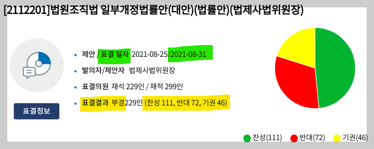판사 임용자격을 5년으로 완화하자는 법안은 사실 21대국회에서도 제기되었다. 법사위원회에서 가결되어 별다른 쟁점 없이 통과될 줄 알았는데, 이게 2021년 8월 31일 본회의 안건으로 상정되었다가 거기서 부결되었다.