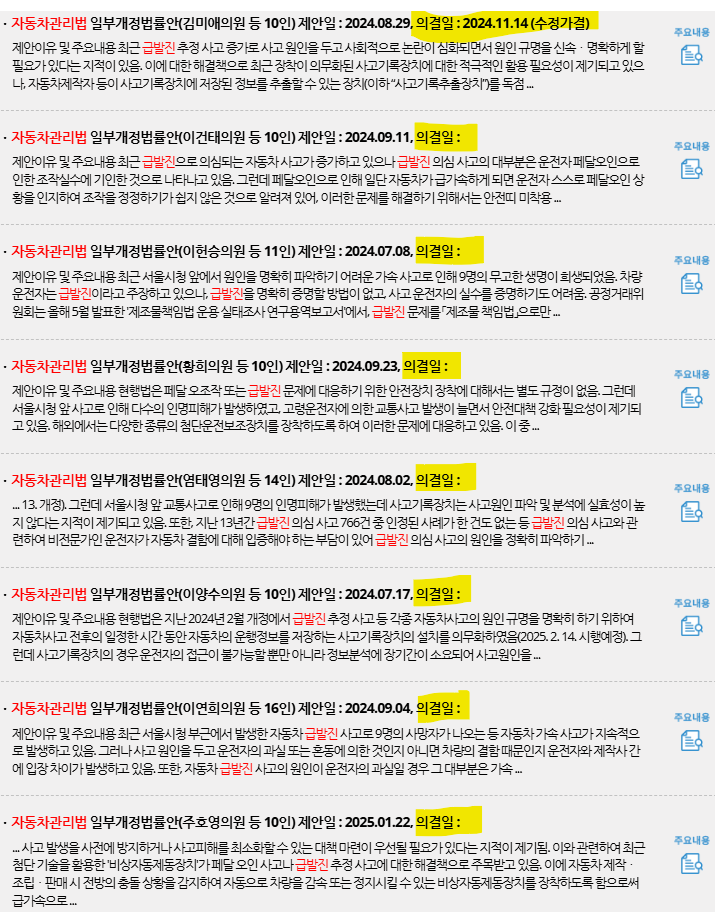 대형참사 후에는 항상 재발방지를 위한 후속 법안이 발의된다. 2024년 7월, 시청역 급발진 추정 역주행 참사가 발생했을 때에도 관련 법률 개정안이 무더기로 발의된 바 있다. 자동차관리법, 제조물책임법 개정안 등이다.