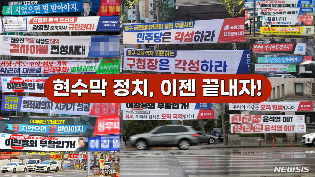 일부 국회의원도 이런 정치현수막의 문제점에 대해 인식하고 있다. 그런 이유로 현재 국회에는 정당현수막 관련 규제를 강화하려는 취지의 법안도 발의돼 있다. 그런데, 조금 더 생각을 진전시켜보면 어떨까? 지금은 소위 AI 시대다. 현수막으로 정치하는 시대는 아니다. 정당현수막 관련 법률을 찔끔찔끔 고칠게 아니라, 이참에 정당현수막 설치 자체를 전면 금지시키면 어떨까? 아마도 국민들로부터 박수받을 것이다.