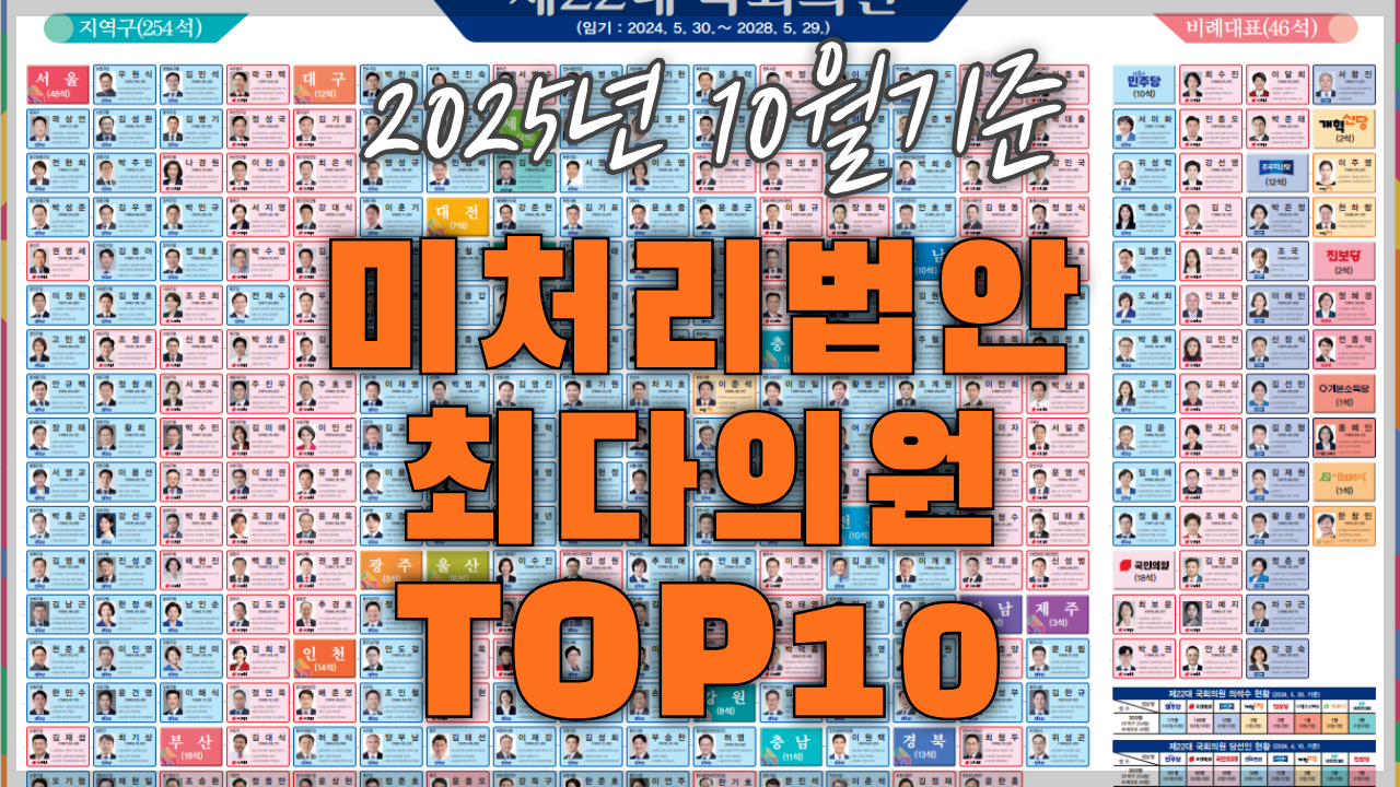 | 2025년 9월, 미처리법안 최다의원 Top 10 (1) | 2025.10.01 |