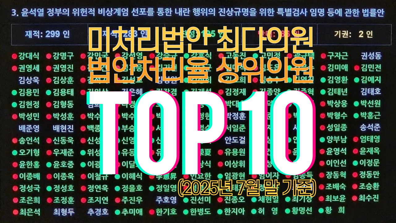 | 2025년 6월, 미처리법안 최다의원 Top 10 (1) | 2025.07.01 |