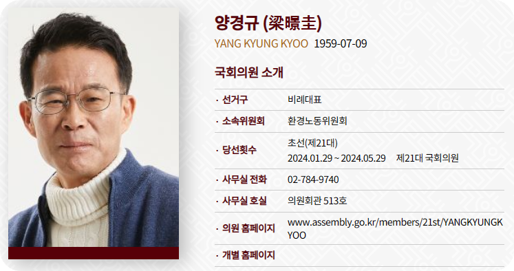 | 양경규 | 3 | 돌봄근로자의 지위와 권리 보장을 위한 기본법안 | 비례(2024.1.29~) | |