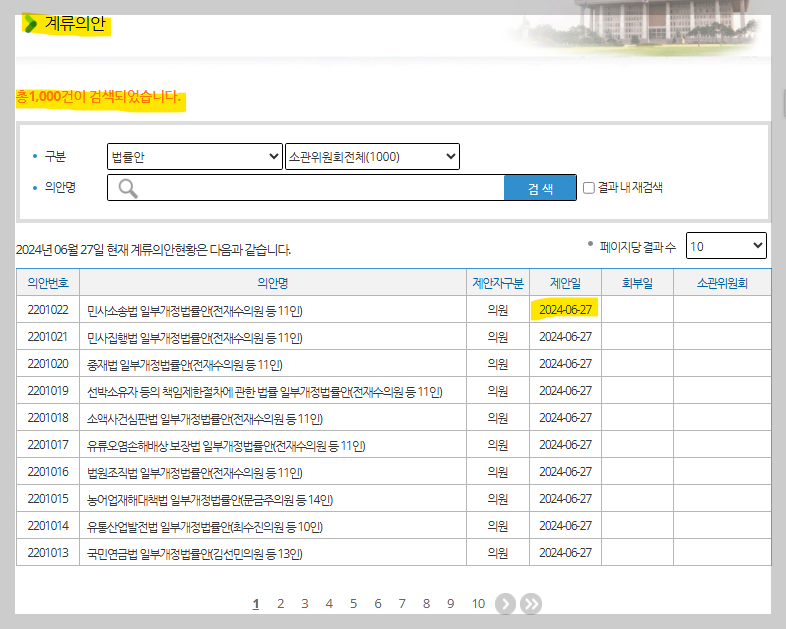 2024년 6월 27일, 국회의원이 발의한 법률안이 1,000건을 돌파했다. 지난 5월 30일 22대 국회 개원 이후 불과 29일 만이다.