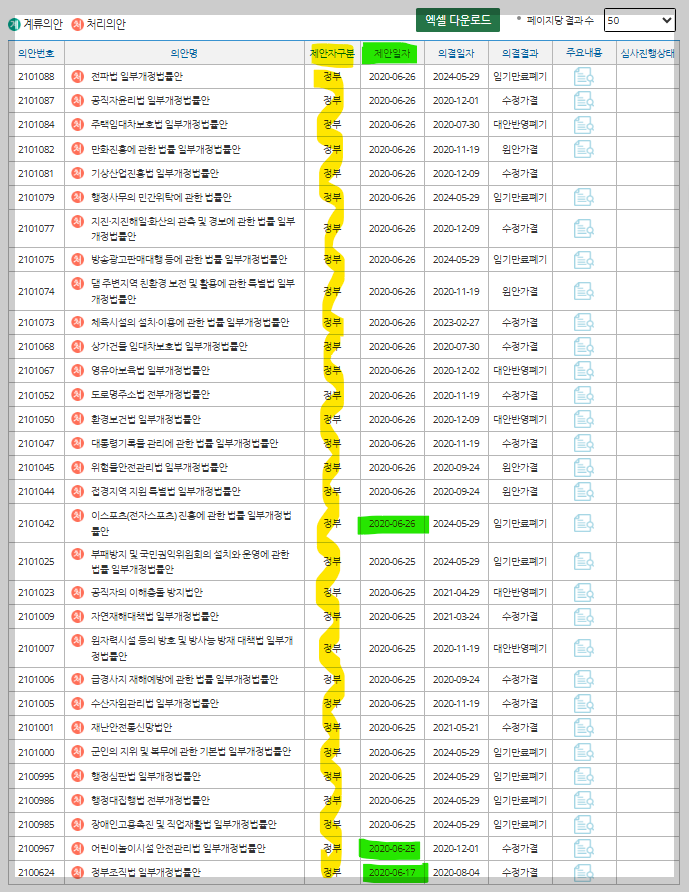 이렇게나 많은 법안을 발의하나? 놀라는 사람이 많을텐데, 이 기록은 21대 국회(2020년 5.30일~2024년 5.29일)보다 하루 늦은 기록이다. 21대 국회에서는 개원 28일만인 2020년 6.26일에 발의 1,000건을 돌파했다.