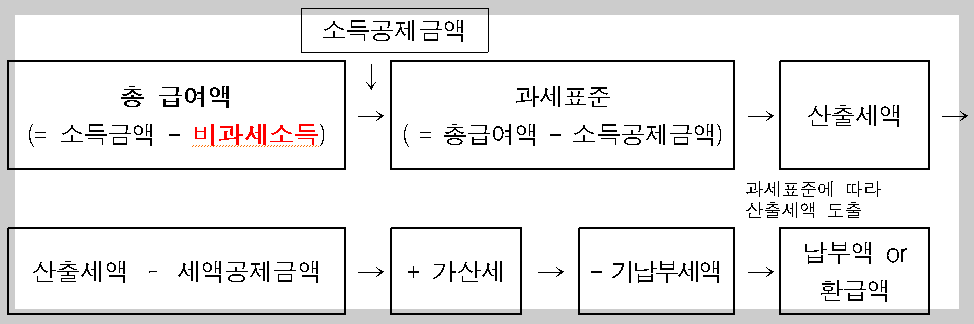 비과세 소득이 늘어나면 같은 연봉을 받더라도 총 급여액이 줄어들게 된다. 당연히 소득세 산출세액도 줄어든다.